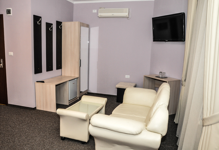 Este o camera cu o suprafata generoasa care dispune de baie proprie cu cabina de dus, aer conditionat,tv led diagonala 100 cm - cablu tv, acces gratuit la internet wireless, minibar taxabil.
